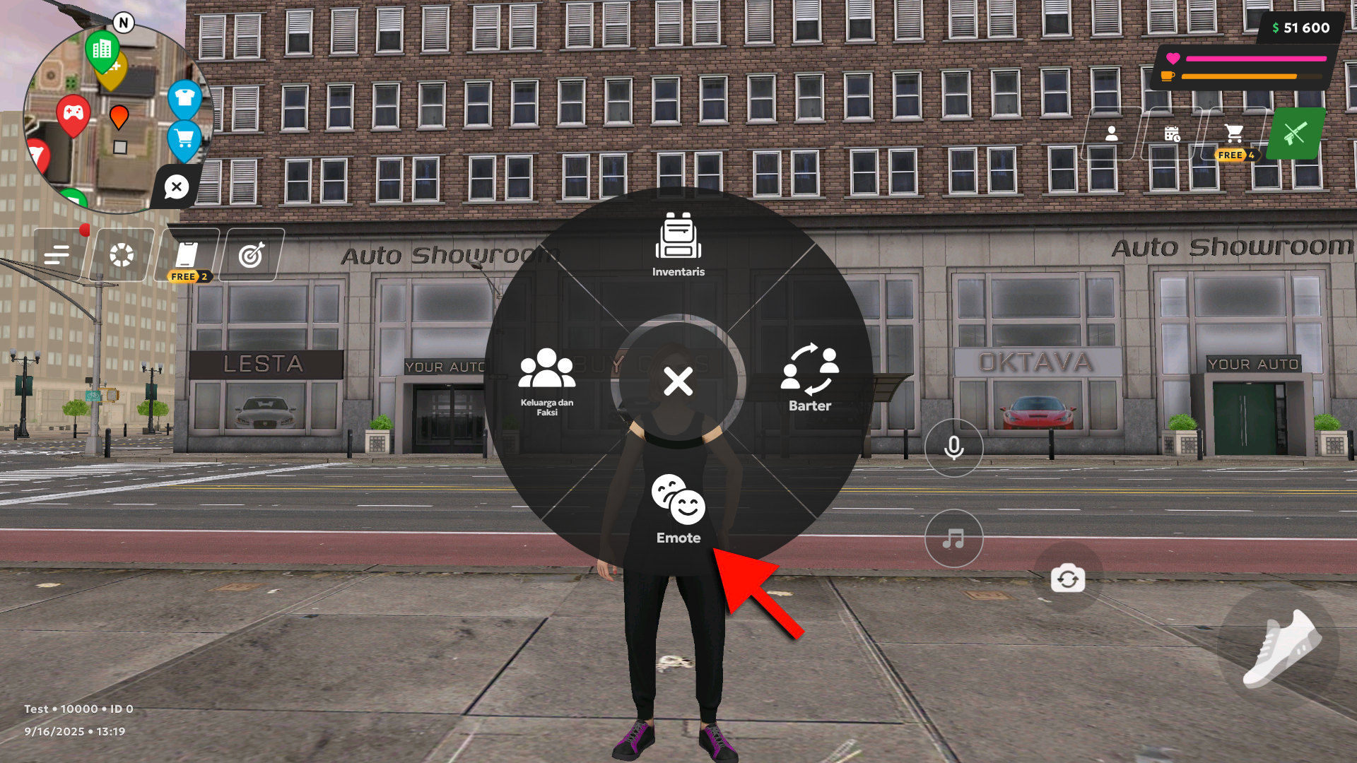 Emote adalah aksi khusus karakter — seperti gestur, pose, dan gerakan. Emote memperkaya interaksi dalam permainan dan mendukung skenario RP.