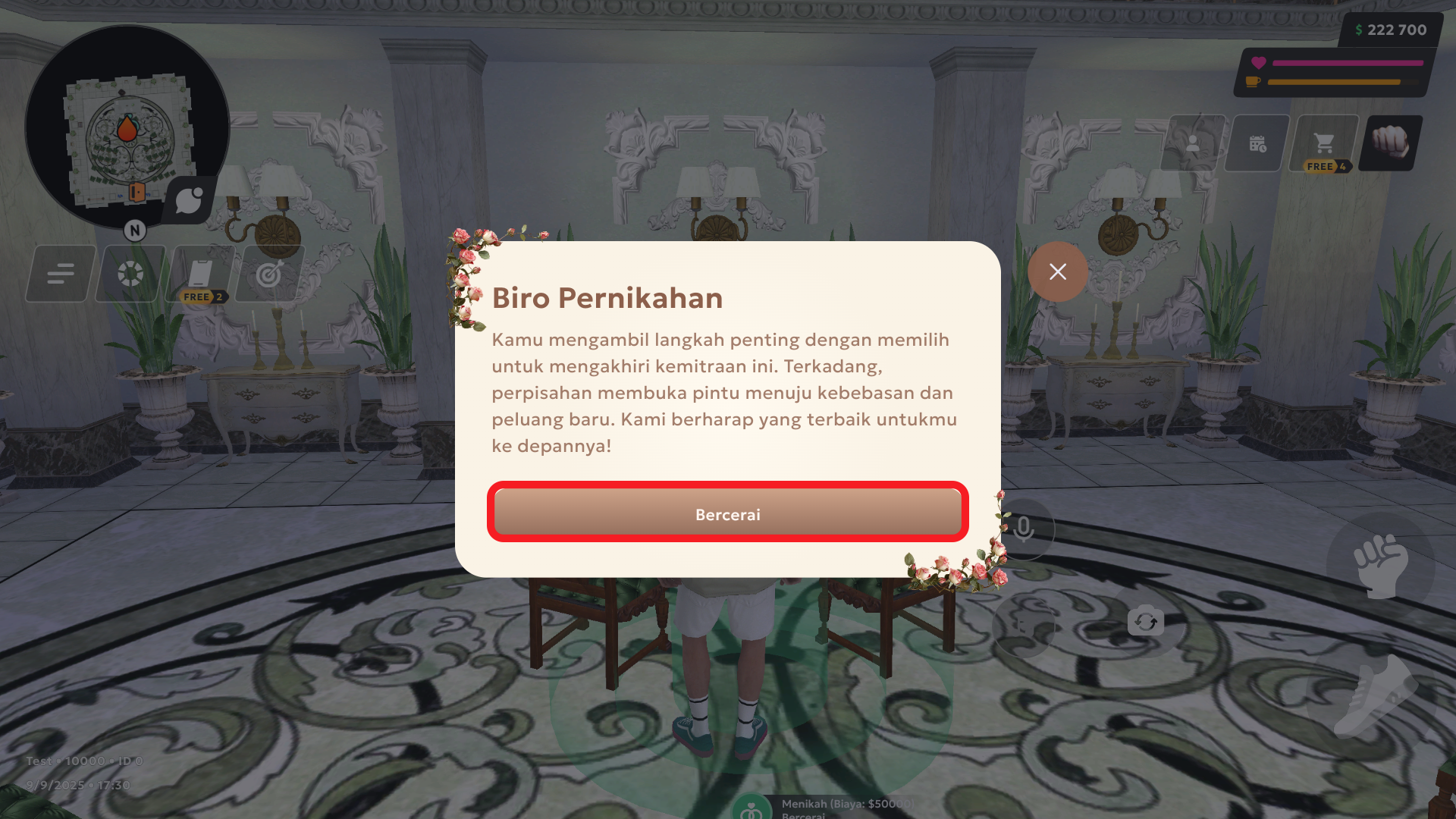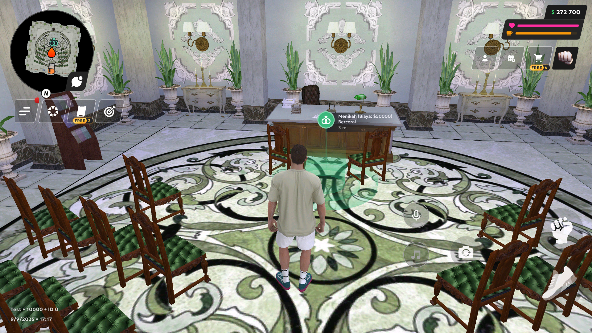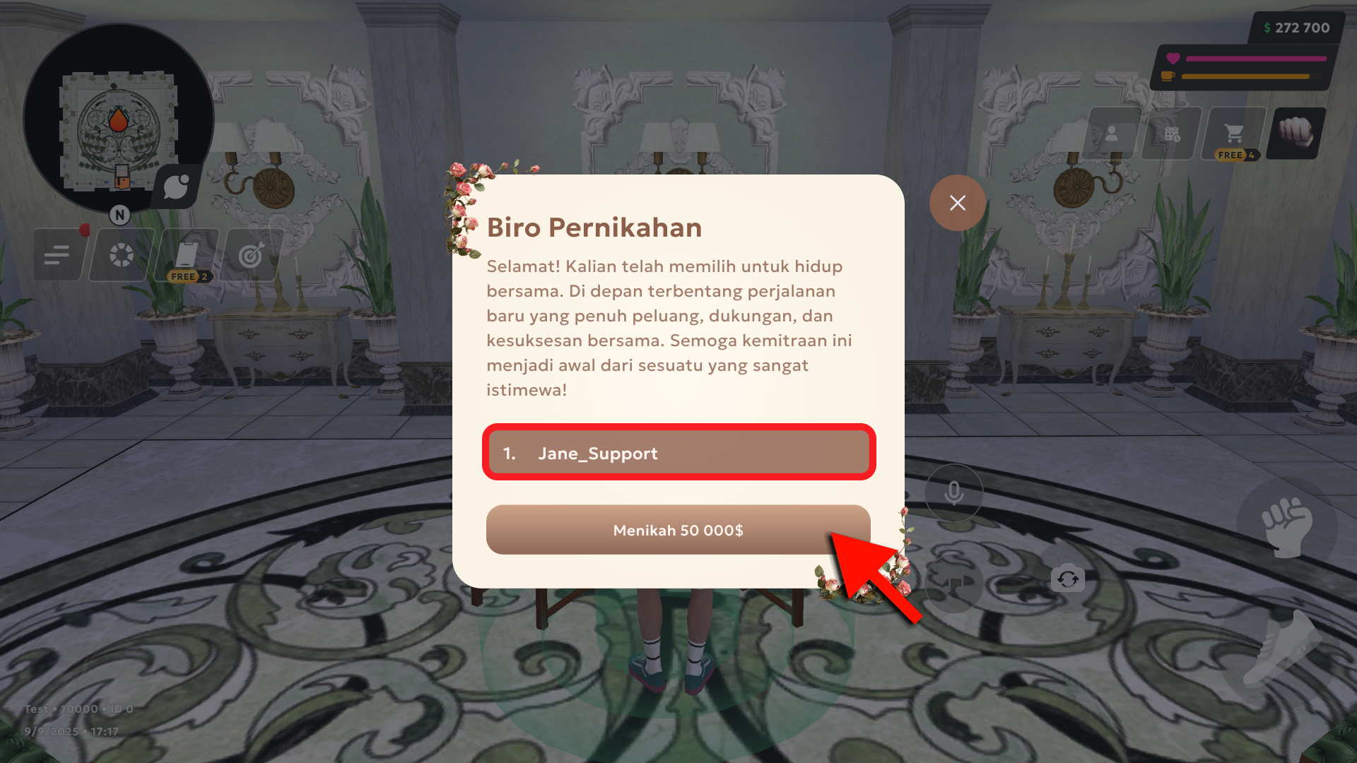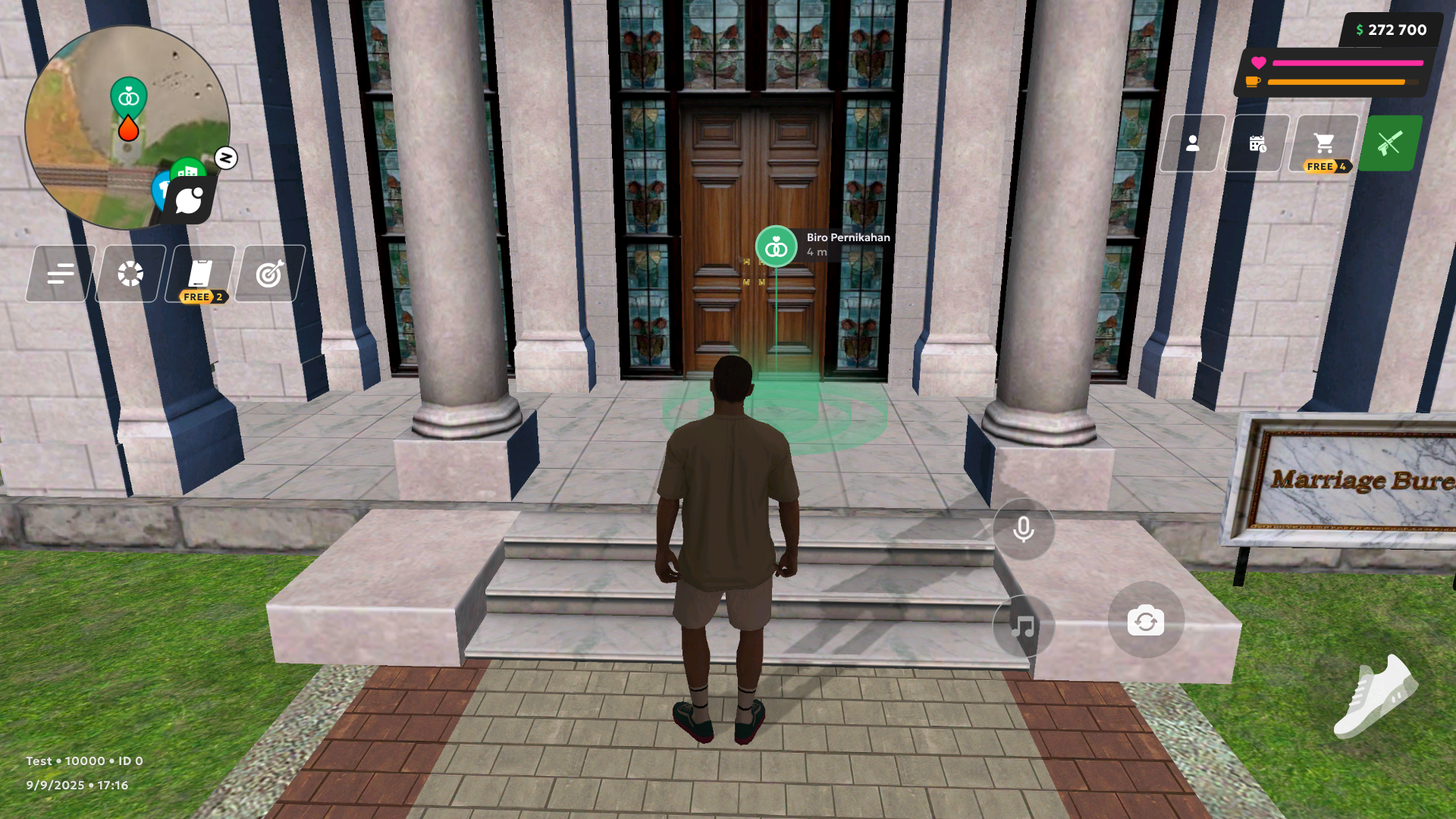 Untuk masuk ke Biro Pernikahan, melangkahlah ke penanda interaksi (titik di depan pintu).