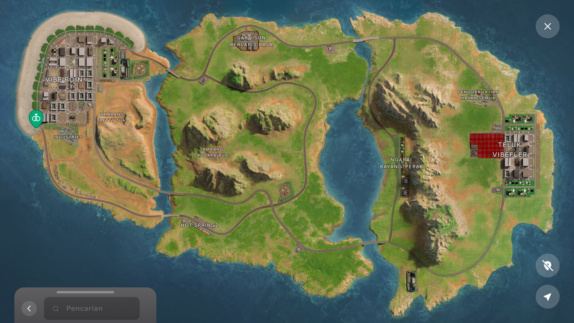 Buka peta > GPS > Tempat Publik > Biro Pernikahan.