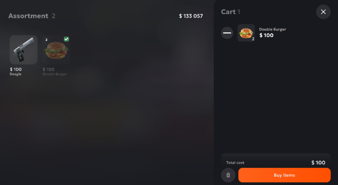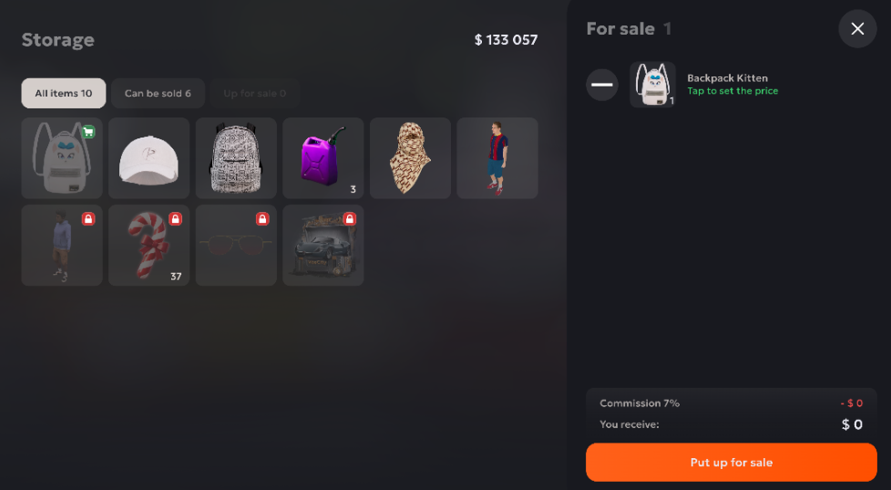 Pilih item yang ingin kamu jual dari Inventaris lalu seret ke area yang ditentukan.