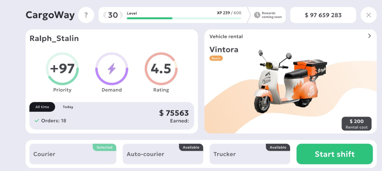 Poin — menunjukkan bagaimana penghasilanmu meningkat. Tergantung pada level keahlian, rating, dan tier tarif. Semakin tinggi stat-nya, semakin besar keuntungan.